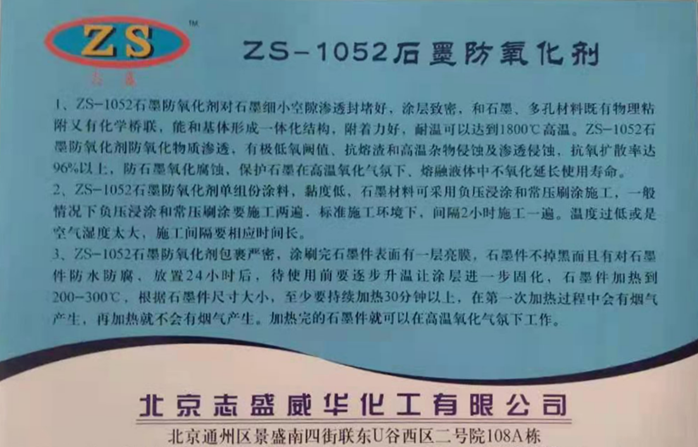 目前,北京志盛该产品已在多个行业取得成功应用,如某玻璃制造企业采用ZS-1052处理后的石墨模具,使用寿命延长5倍以上,生产成本显著降低。随着新材料、新工艺的不断发展,石墨防氧化技术也将持续创新。随着新材料、新工艺的不断发展,石墨防氧化技术也将持续创新。